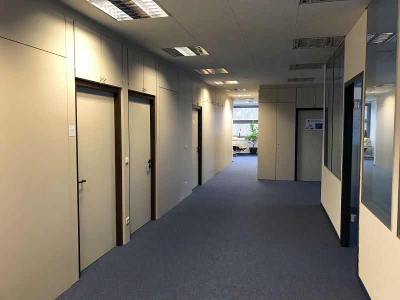 Teppichboden, durchgehender Einbauschrank im Büro, Einbauküche zur Mitnutzung, Herren- und Damentoiletten getrennt, großes Besprechungszimmer, Aufzug.
